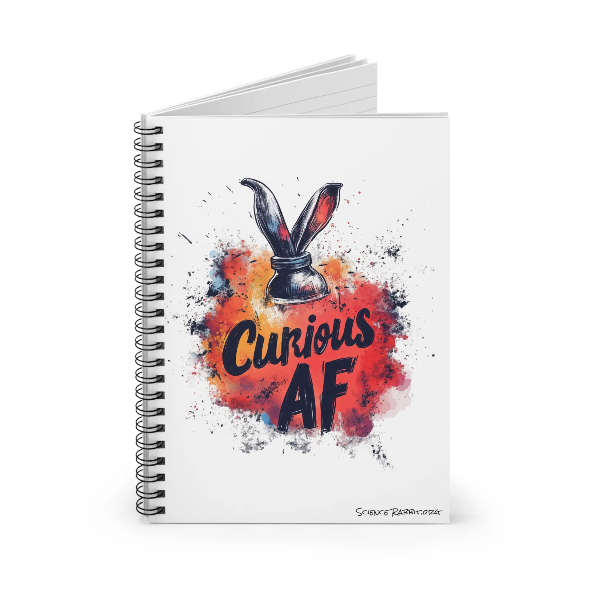 Write down all your brilliant ideas and thoughts with the official “Curious AF” spiral notebook from Science Rabbit.